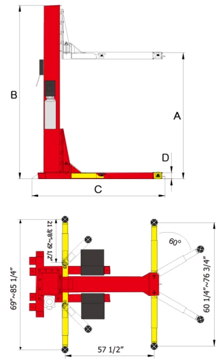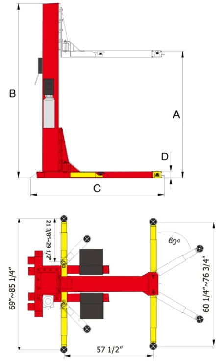 - Max Lifting Height: Reaches up to 77 3/4″ (1976 mm), accommodating a wide range of vehicles.