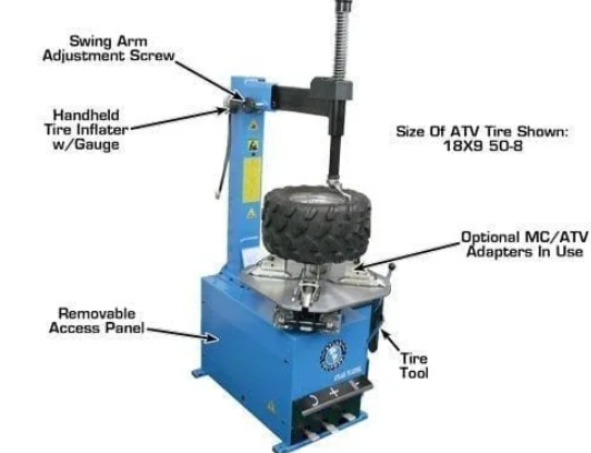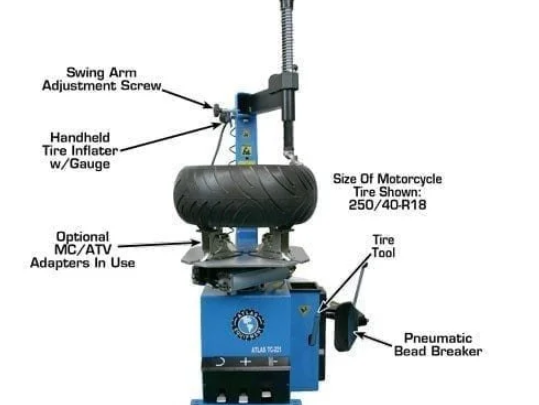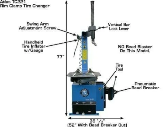 The Atlas® TC221 rim clamp, swing arm tire changer is the perfect machine for homeowners, a small commercial garage or an ATV/Motorcycle dealer. The TC221 has all the same parts and is the same quality as the Atlas® TC229 without the built in “Beadblaster.”