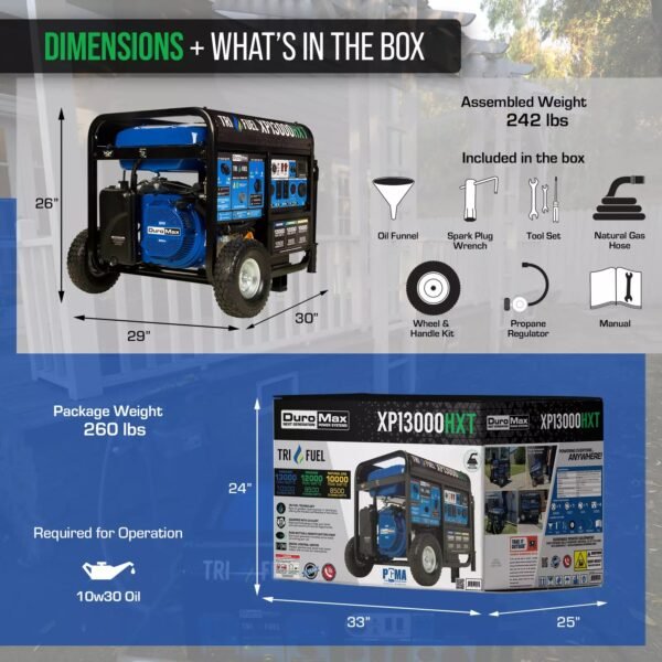 DuroMax XP13000HXT 13,000W Electric Start Tri-Fuel Portable Generator w/CO Alert